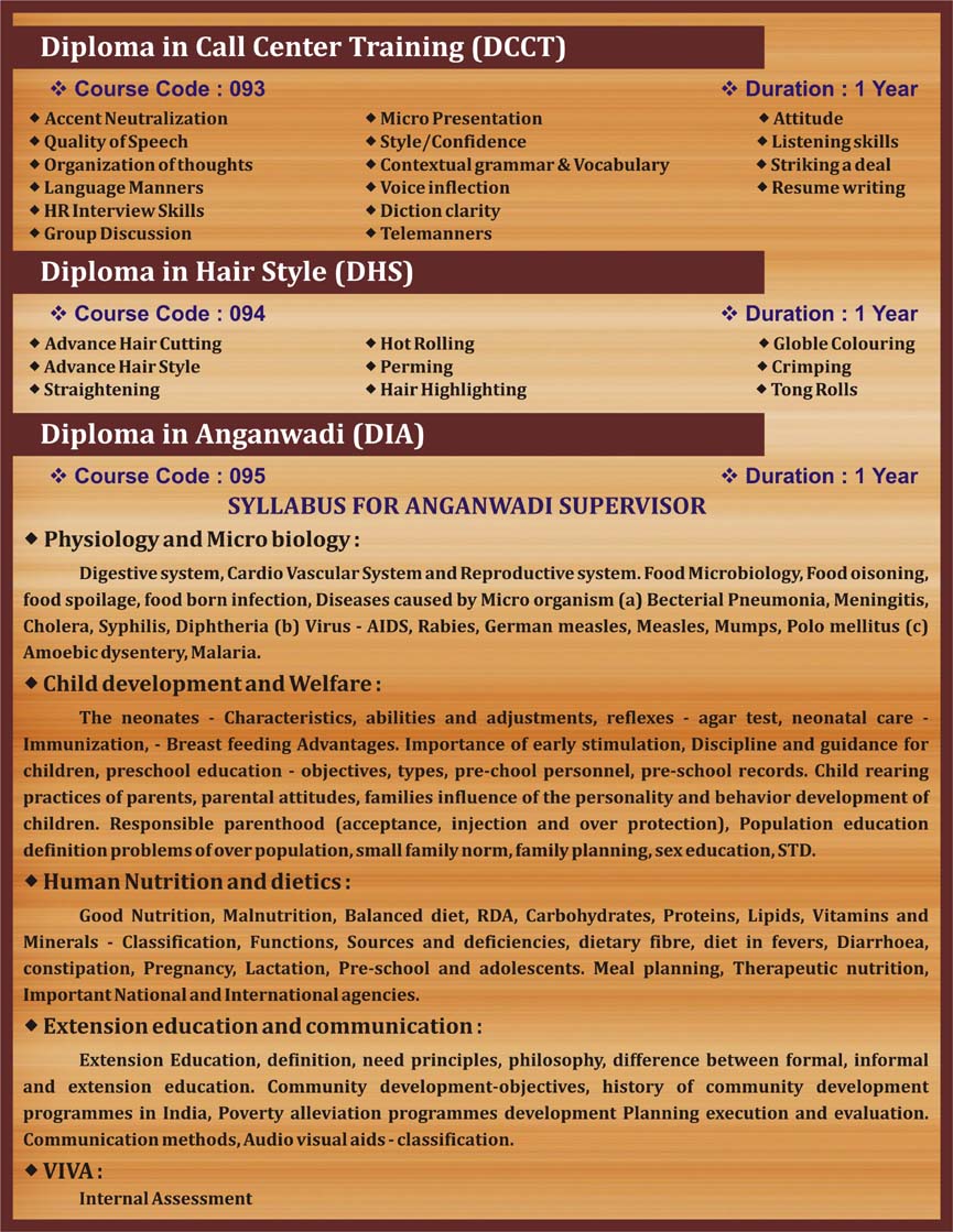 • Short Term Computer & Vocational Courses